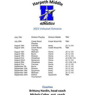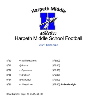 Fall sports – golf, cheer, football, girls soccer and volleyball – are underway at Harpeth Middle School. Please see below for the team's schedules.