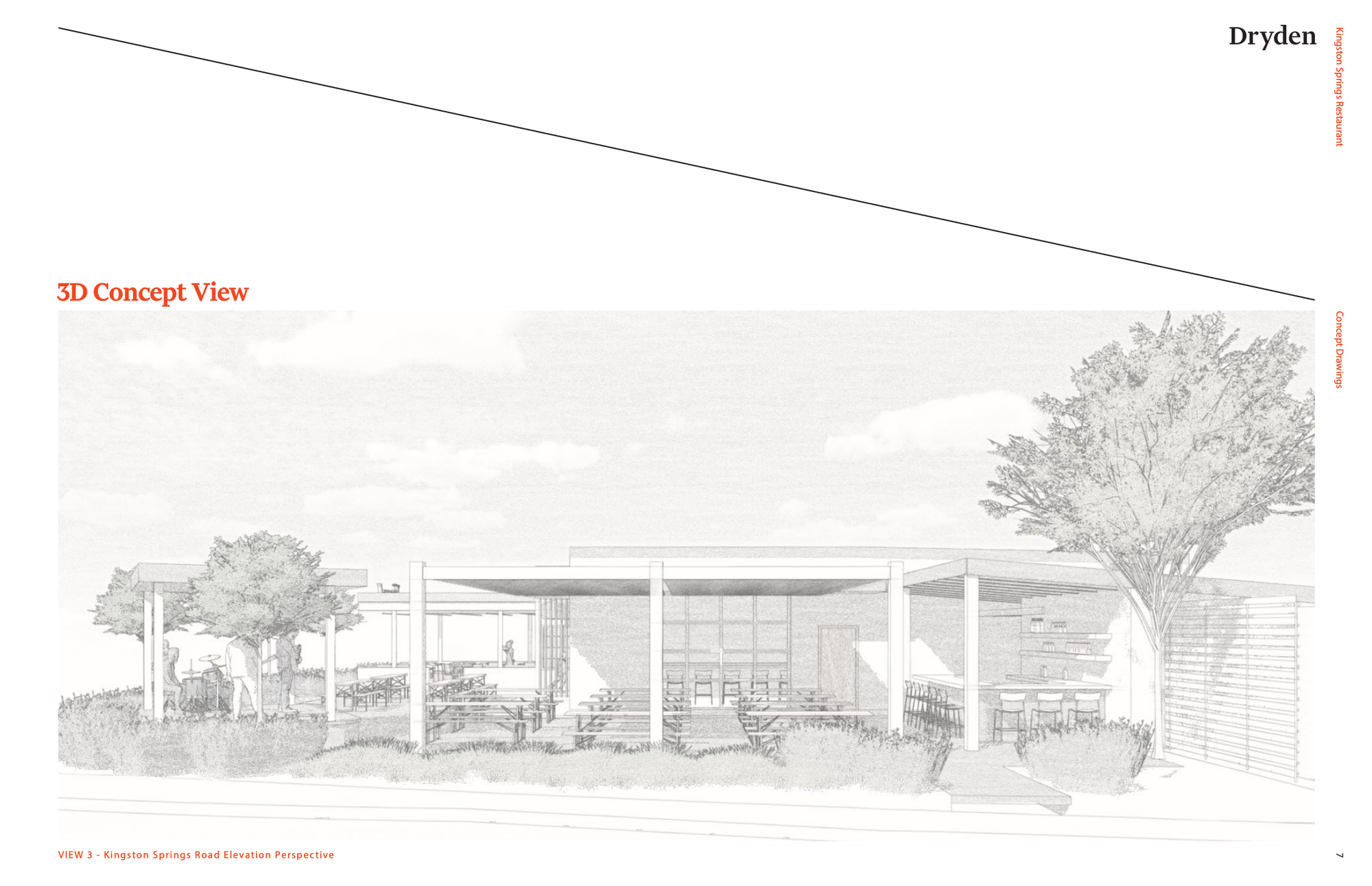 The restaurant’s proposed layout features an indoor-outdoor flow with covered patio seating, a small stage for performances and space for roughly 60 indoor seats with a total capacity of about 200 people for larger community events.