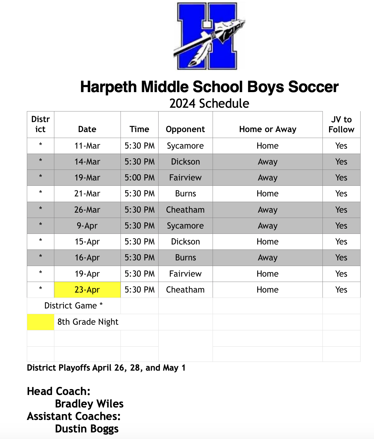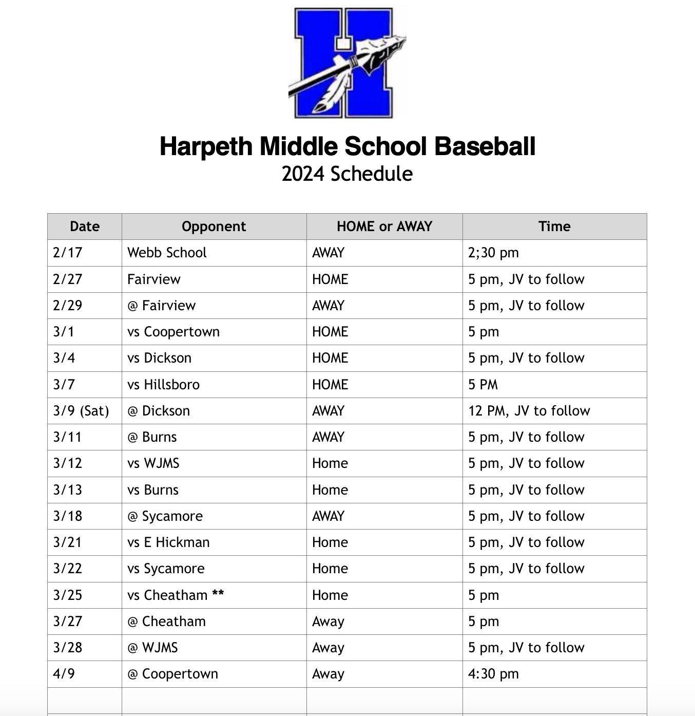 With the second semester well underway and basketball season officially over at Harpeth Middle School (HMS), the community is encouraged to support spring sports at HMS: baseball, softball, track and field, and boys soccer.